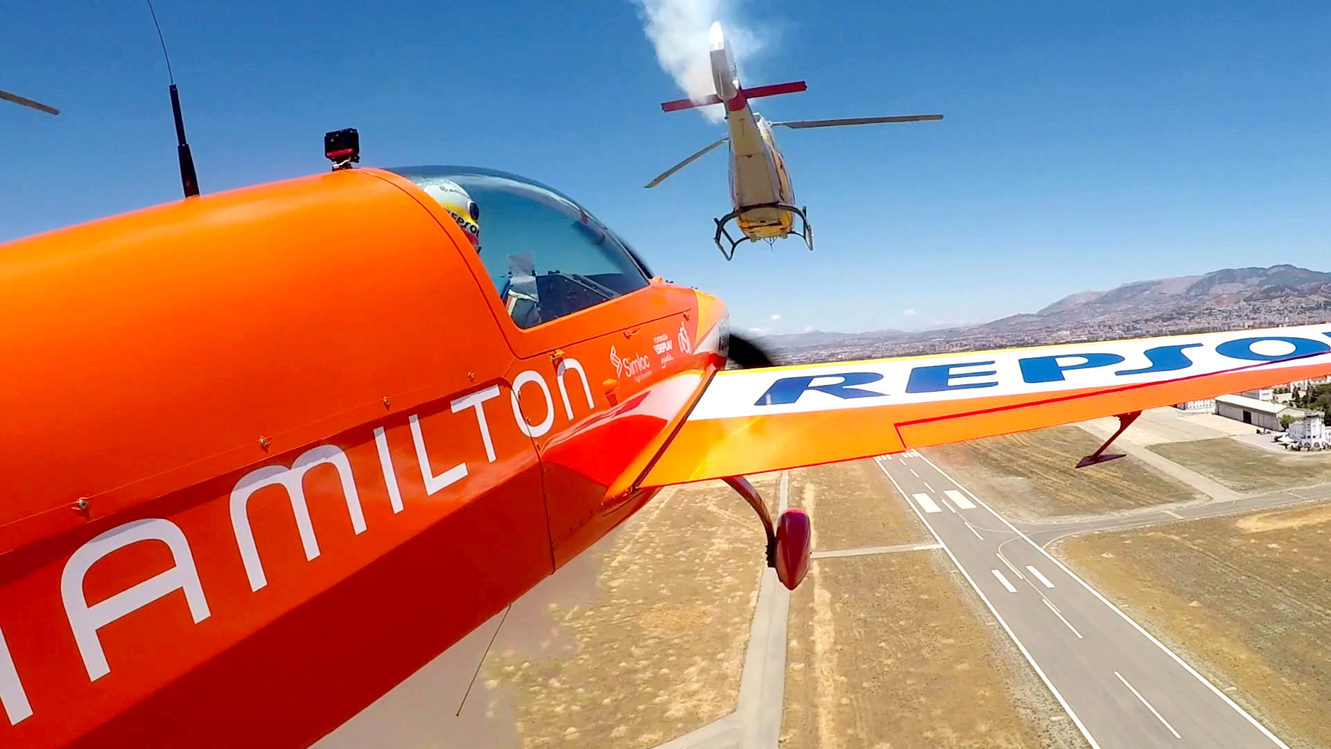 Primera vez que un avión acrobático vuela con la Patrulla Aspa